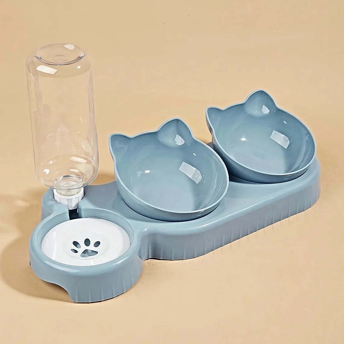Keep your cat or small dog comfortable while eating and drinking with this 3-in-1 tilted bowl set. The ergonomic design protects the neck, while the gravity water bottle ensures a steady supply of fresh water. Ideal for pets who need a comfortable eating position and easy access to food and water throughout the day.